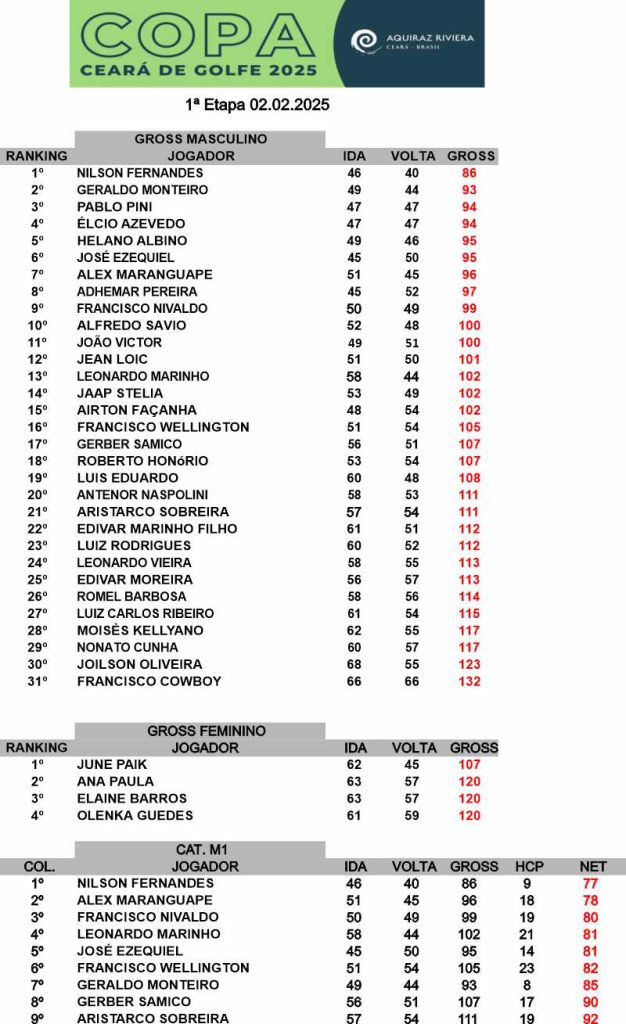 🏌️ Copa Ceará de Golfe Amador - 02 Fevereiro 2025🏌️