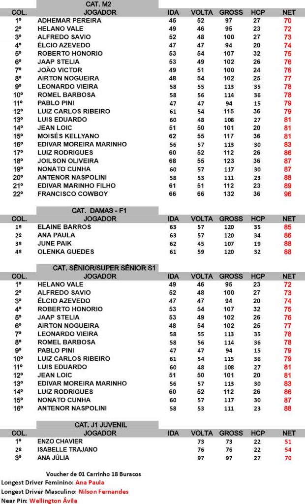 Jogadas de baixo risco, constância e muita concentração marcaram esse torneio. Destaque para Near Pin com Welingtons Ávila do Golf Ville, longest Drive masculino com Nilson Fernandes do Aquiraz Riviera e longest drive feminino com Ana Paula do Aquiraz Riviera.