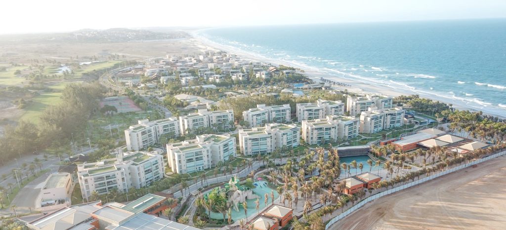 Apartamento pé na Areia localizado no Aquiraz Riviera, resort cearense com campo de golfe profissional 18 buracos, parque aquático, hotel 5 estrelas, casas e condomínios residenciais.